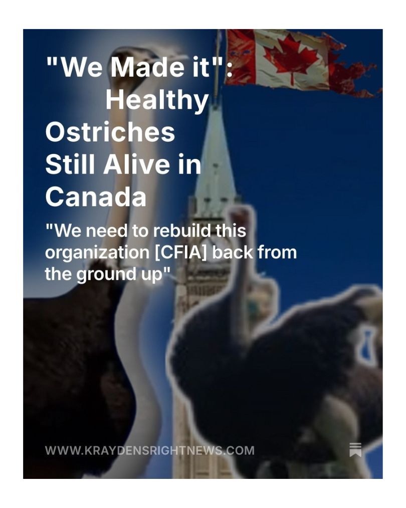 To Support Universal Ostrich: Send YOUR Feedback to the Canadian Food Inspection Agency (CFIA) & RCMP & Mark Carney: Mark Carney on X https://x.com/MarkJCarney RCMP on X https://x.com/rcmpgrcpolice CFIA: CFIA On X https://x.com/InspectionCan CFIA On YouTube: https://www.youtube.com/@cfia BC CFIA phone and email addresses https://inspection.canada.ca/en/about-cfia/contact-cfia/contact-cfia-office-telephone CFIA Webform: https://active.inspection.gc.ca/netapp/contactus/contactuse.aspx